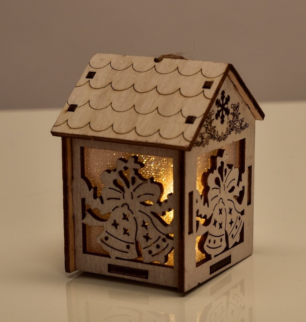 Dřevěný domek, s motivy zvonků, LED osvětlenískladem 1 ks89 Kč/ ks