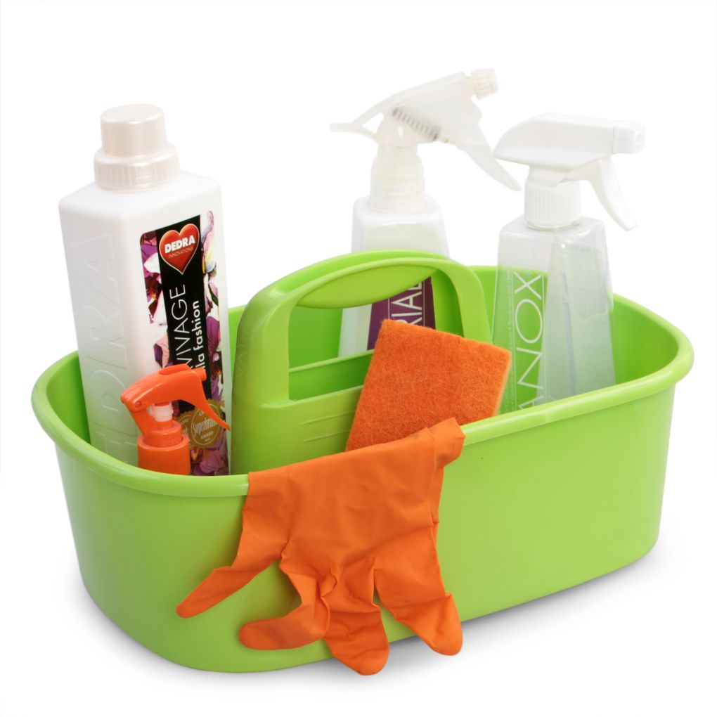Nevíš kam uložit čistící prostředky během úklidu a mít je stále po ruce? Použij šikový box na přenášení a už nebudeš potřebovat více rukou a nebude Tě trápit jak to vše pobrat.
