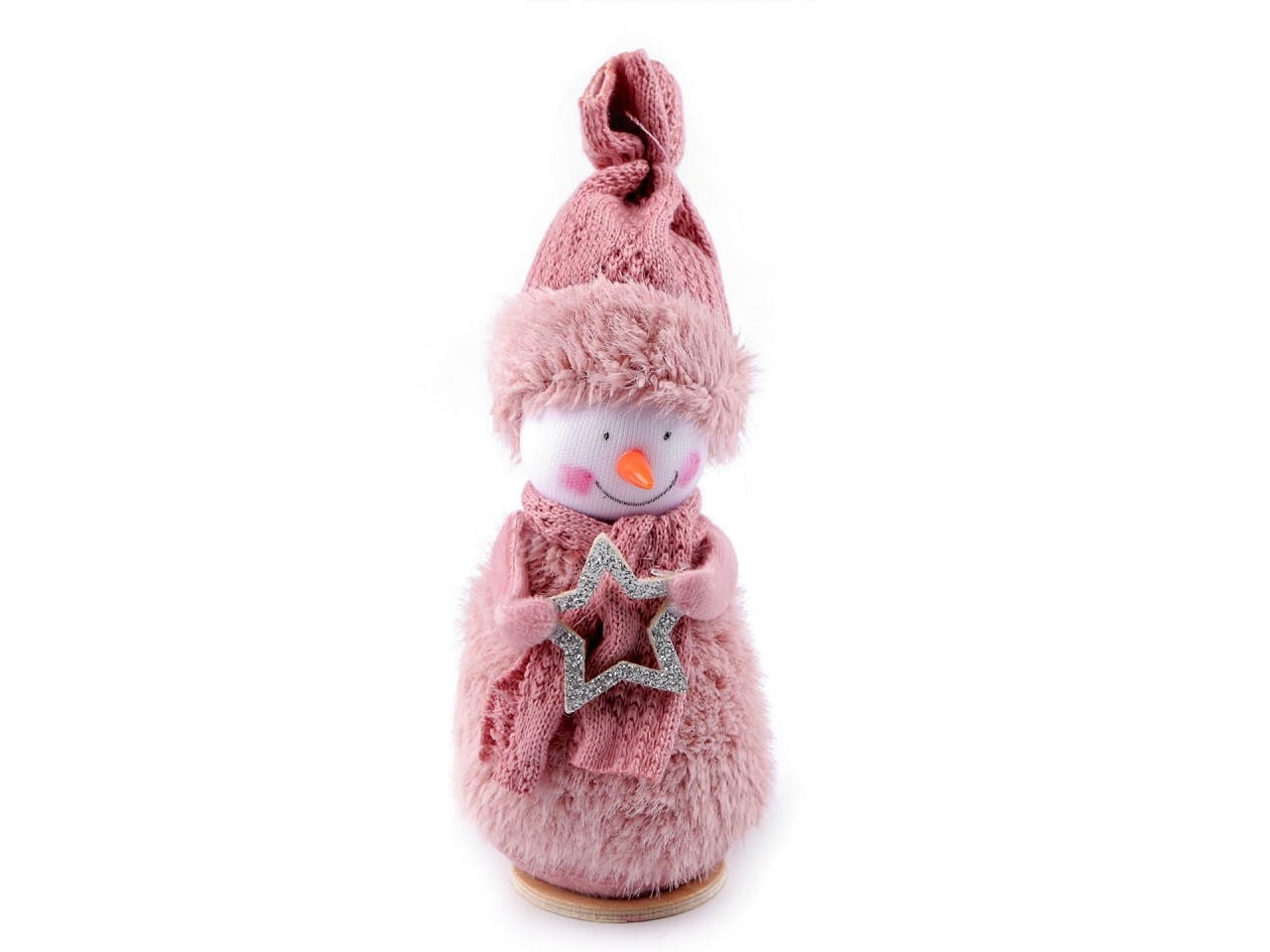 Plyšový sněhulák je milou zimní dekorací. Vyniká hravými detaily. Ve spodní části je dřevěný podstavec, díky kterému má postavička dobrou stabilitu.
