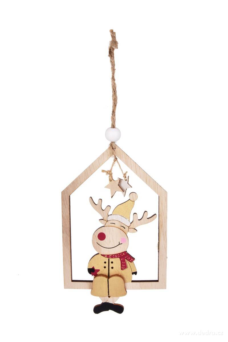 Dřevěná ozdoba ve tvaru domečku se sobíkemSkladem 3 ks79 Kč/ ks