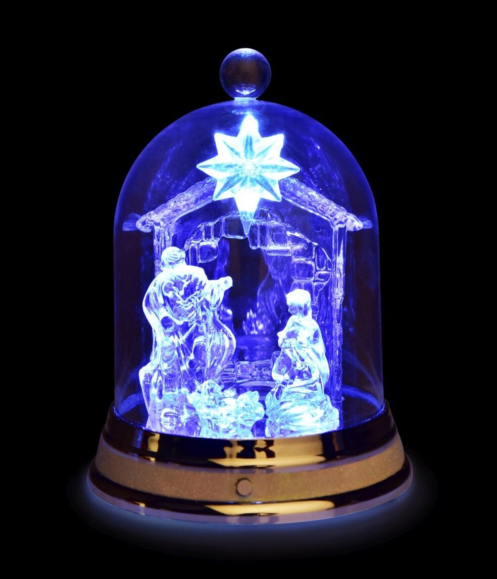 LED svítící betlém uvnitř šturcu, svítící a hrající melodie (lze je vypnout).