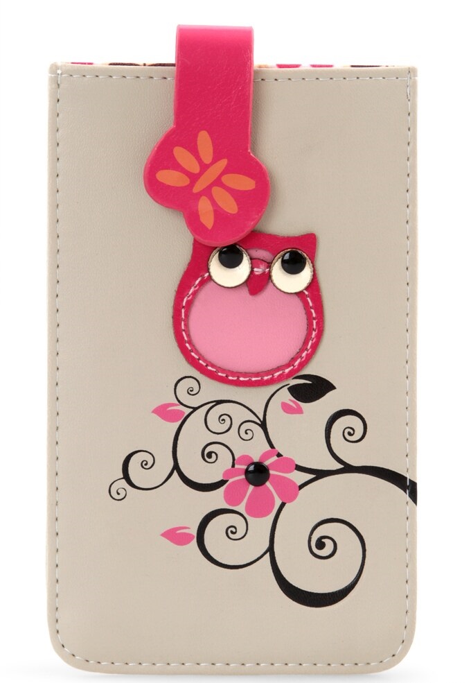 Pouzdro na mobil, s aplikací sovičky, z ekokůže