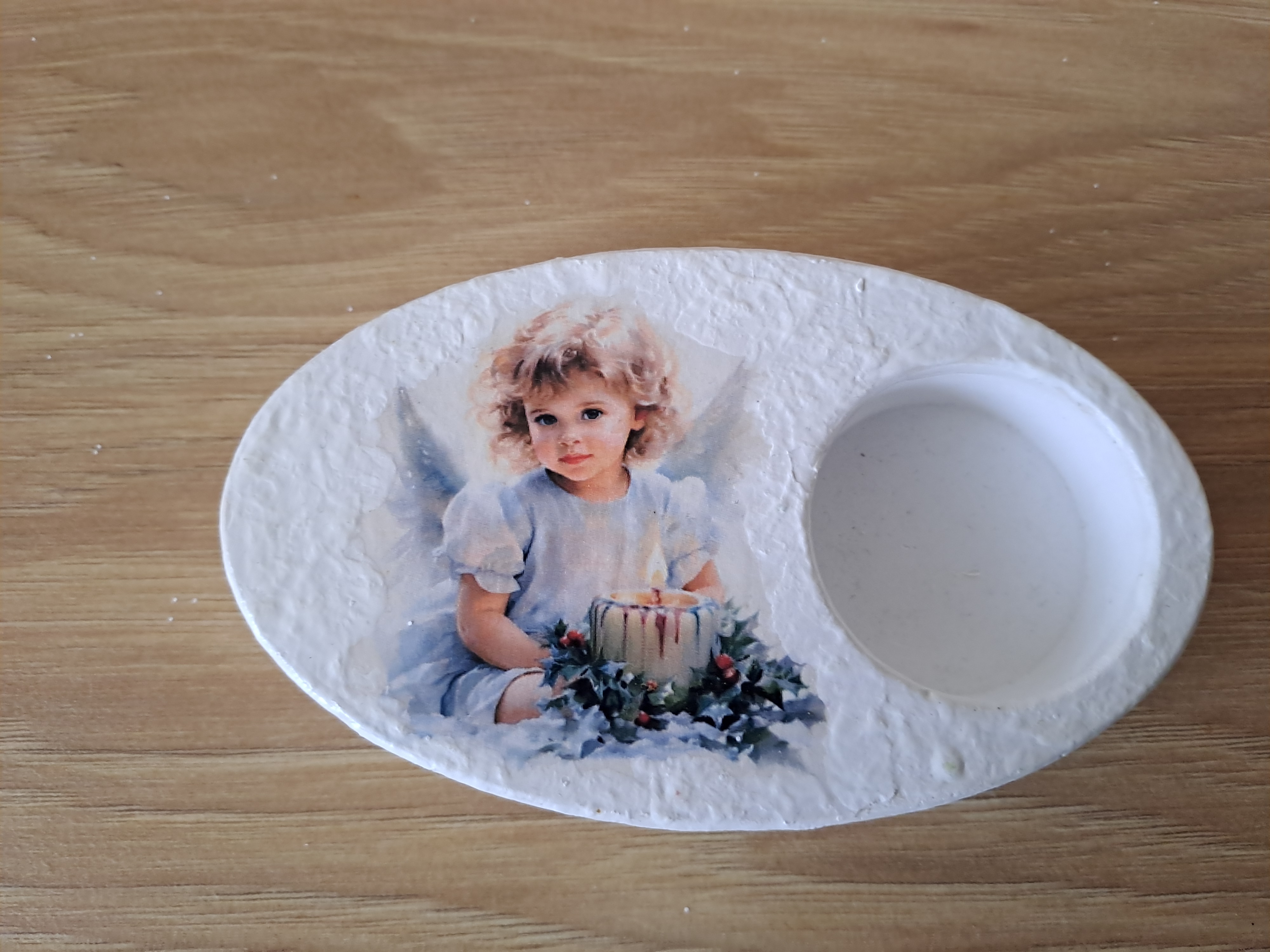 Svícen na čajovou svíčku - ovál - andílek se svíčkou